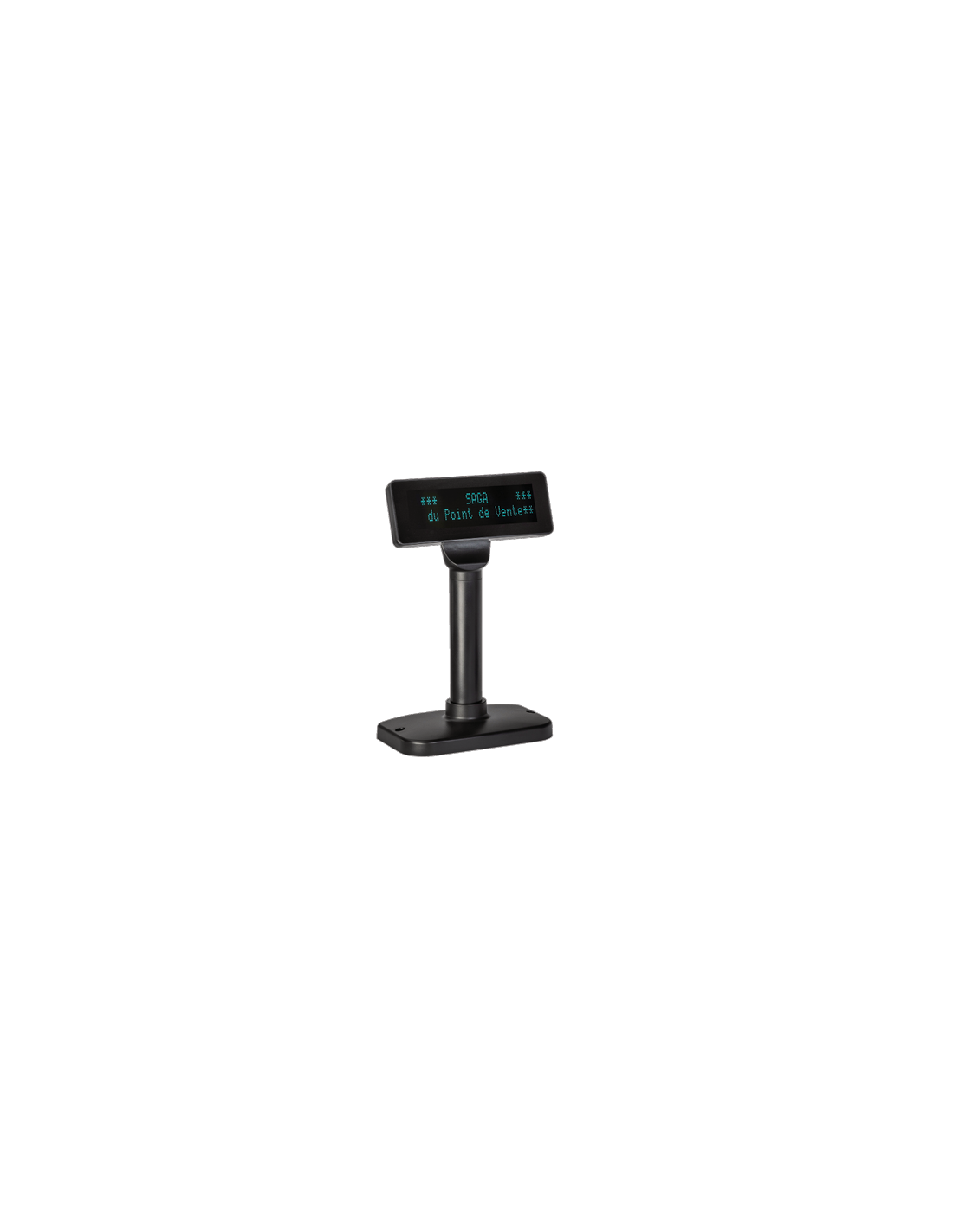 Le SAGA SGDP-240 est un afficheur client 2 lignes VFD conçu pour les commerces, boutiques et points de vente souhaitant afficher les prix et informations de transaction de manière claire et professionnelle. Grâce à sa technologie fluorescente bleu-vert (VFD), il garantit une lisibilité optimale même dans les environnements lumineux, avec une luminosité de 300 cd/m² et un angle de vue de 60°.