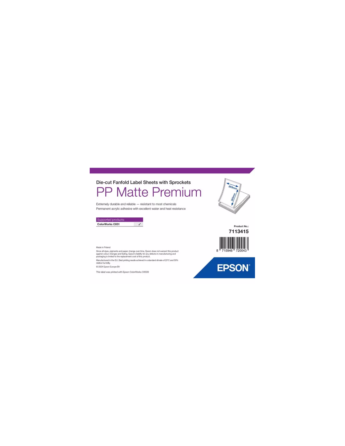 Etiquettes 203x152mm MAT Label pour Epson C831