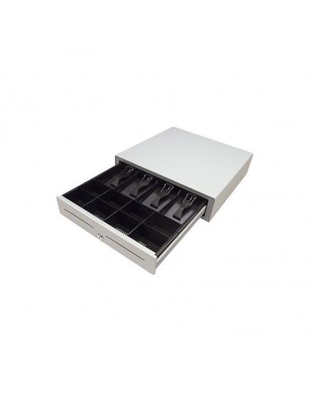 Ce tiroir-caisse 3S-430 possède un système d'intercalaires démontable qui lui permet de stocker 8 types de billets et 8 types de pièces. Deux fentes en face avant sont prévues pour le rangement des chèques, factures, reçu CB etc.