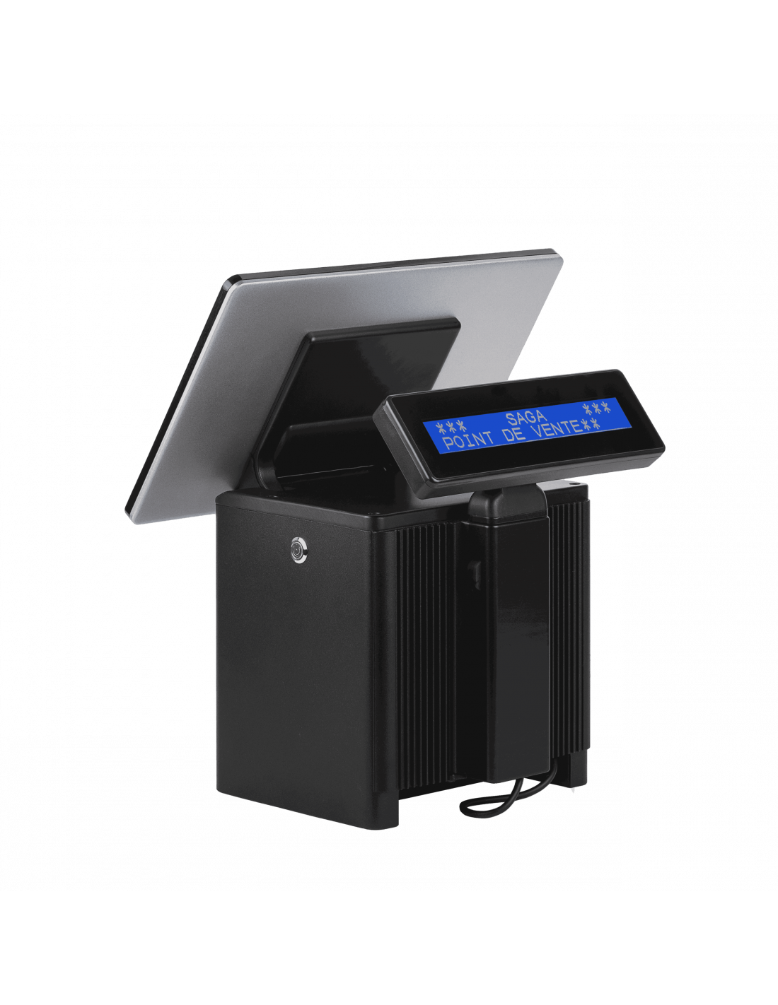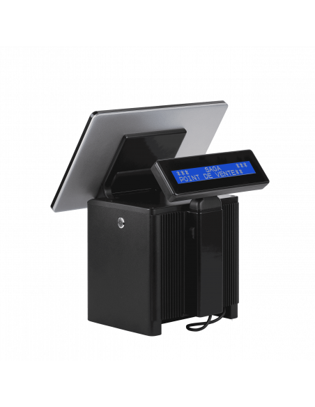 Pensé pour le confort quotidien des vendeurs, ce terminal dispose d'un écran orientable à 90° et d'une dalle tactile haute luminosité (350 cd/m2), assurant une excellente lisibilité même sous un éclairage intense. L'afficheur client intégré de 2 lignes permet de communiquer clairement les prix et les informations d'achat en temps réel, renforçant ainsi la transparence lors de la transaction. Sa conception "fanless" (sans ventilation) garantit un fonctionnement totalement silencieux et empêche l'accumulation de poussière interne, ce qui prolonge la durée de vie de l'appareil. Équipé d'un processeur performant Intel Alder Lake-N97 et de 8 Go de RAM, il offre la réactivité nécessaire pour enchaîner les transactions sans aucun ralentissement.